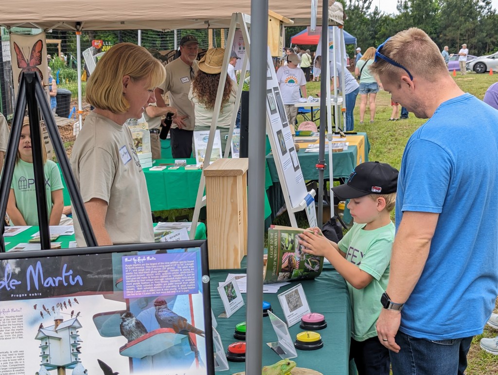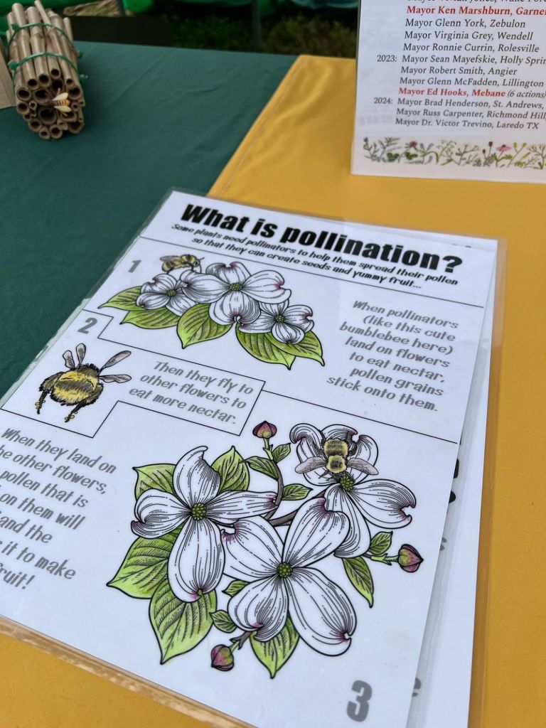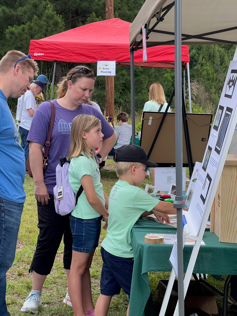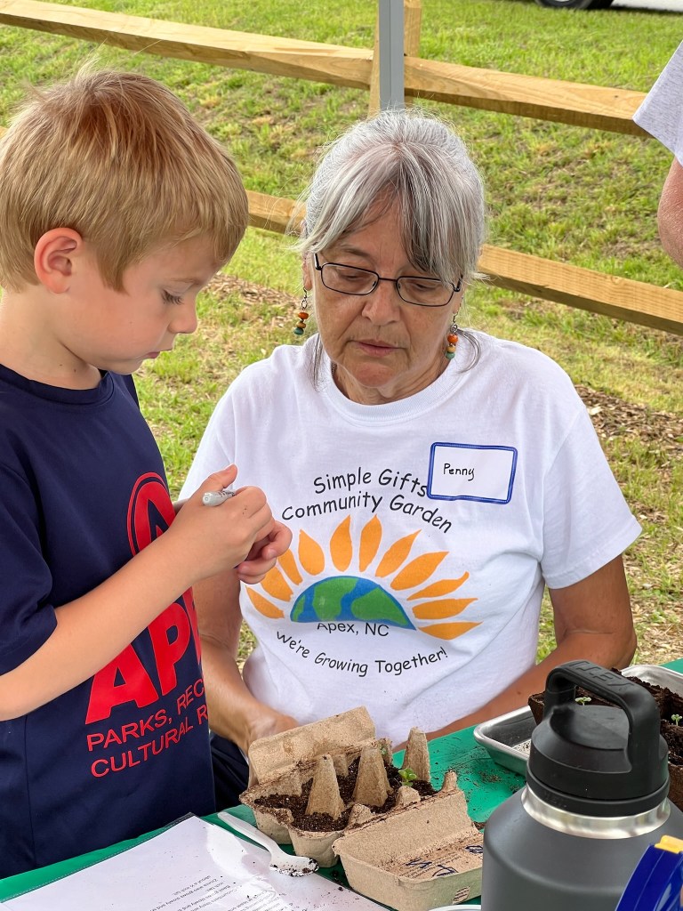The grand opening included a number of educational displays and activities for adults and kids alike. Garden leaders led tours through the garden, currently planted with nine different spring crops, seventeen summer crops, and perennial raspberries. Members of the South Wake Conservationists led tours of the pollinator beds, with over 50 different species already established along the garden perimeter. Families and kids of all ages had fun and were very engaged in all the activities at various special exhibits that included: