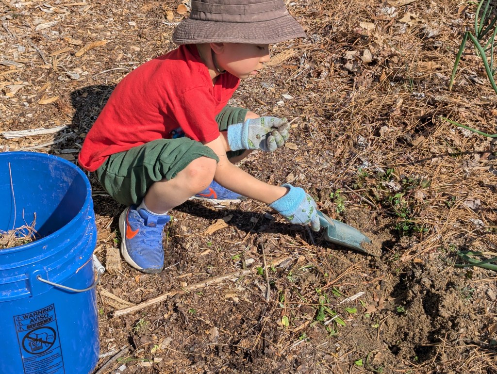 What a great day at the garden! There was a whole lot of plantin’ and weedin’ going on, and the weather was perfect. We had a tremendous turnout and were happy to welcome so many new members. It was especially good to see the enthusiasm of the kids that came with their parents. One told me, as she was leaving, “It was fun and I want to come back!”