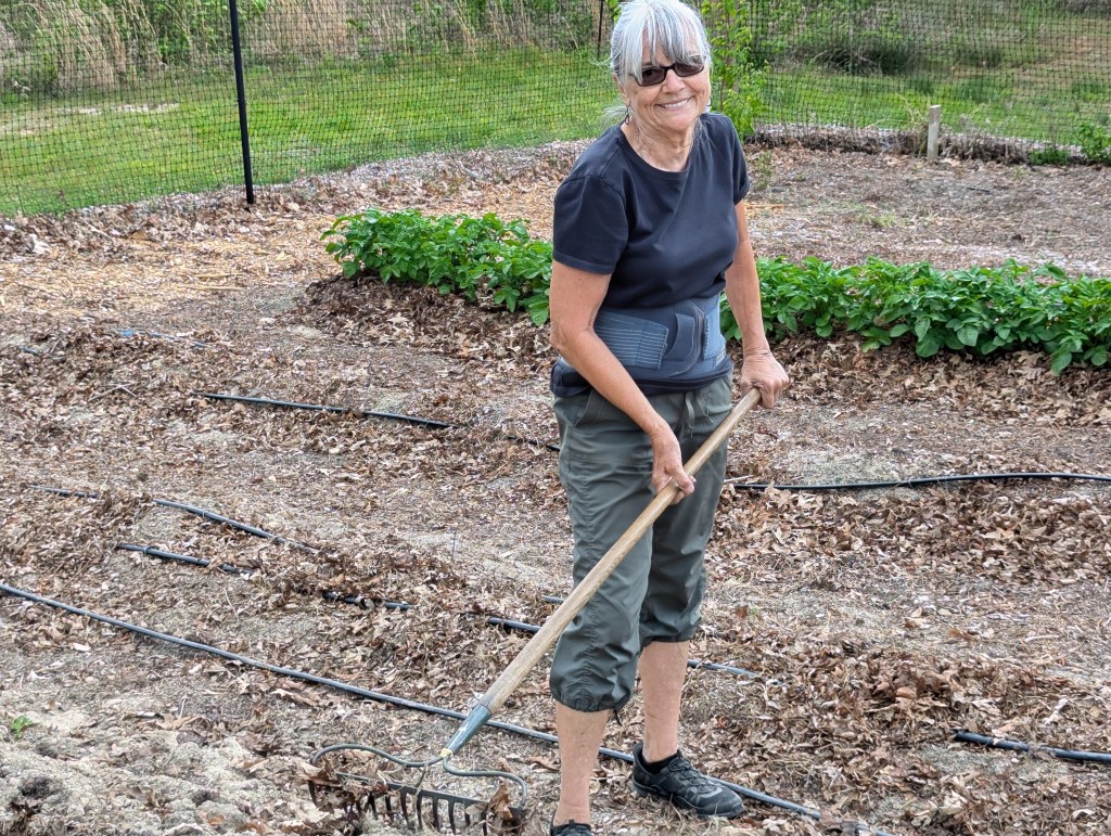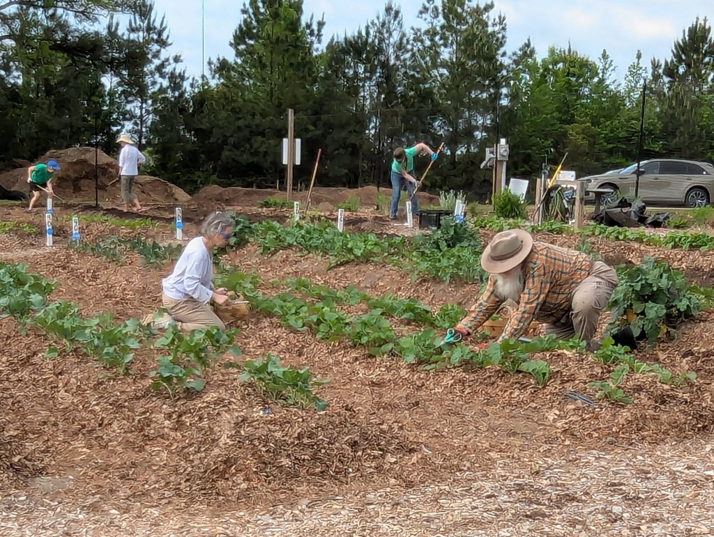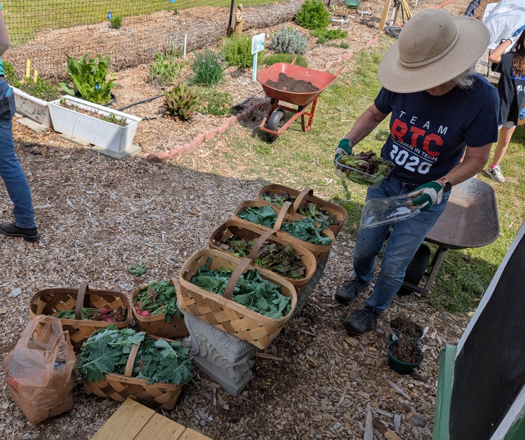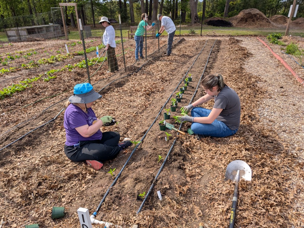 Around twenty garden volunteers answered the call to get summer crops in the ground today. The teamwork was exceptional, and we were pleased to also welcome two new members to the garden! All the live plants (tomatoes, peppers, and eggplant) were planted after preparing the soil, plus a bonus row of pattypan squash by seed, resulting in eight new rows of summer crops. We were short a few live plants, so those will be brought Tuesday to complete those rows. Some companion plants were also planted to further promote crop success.