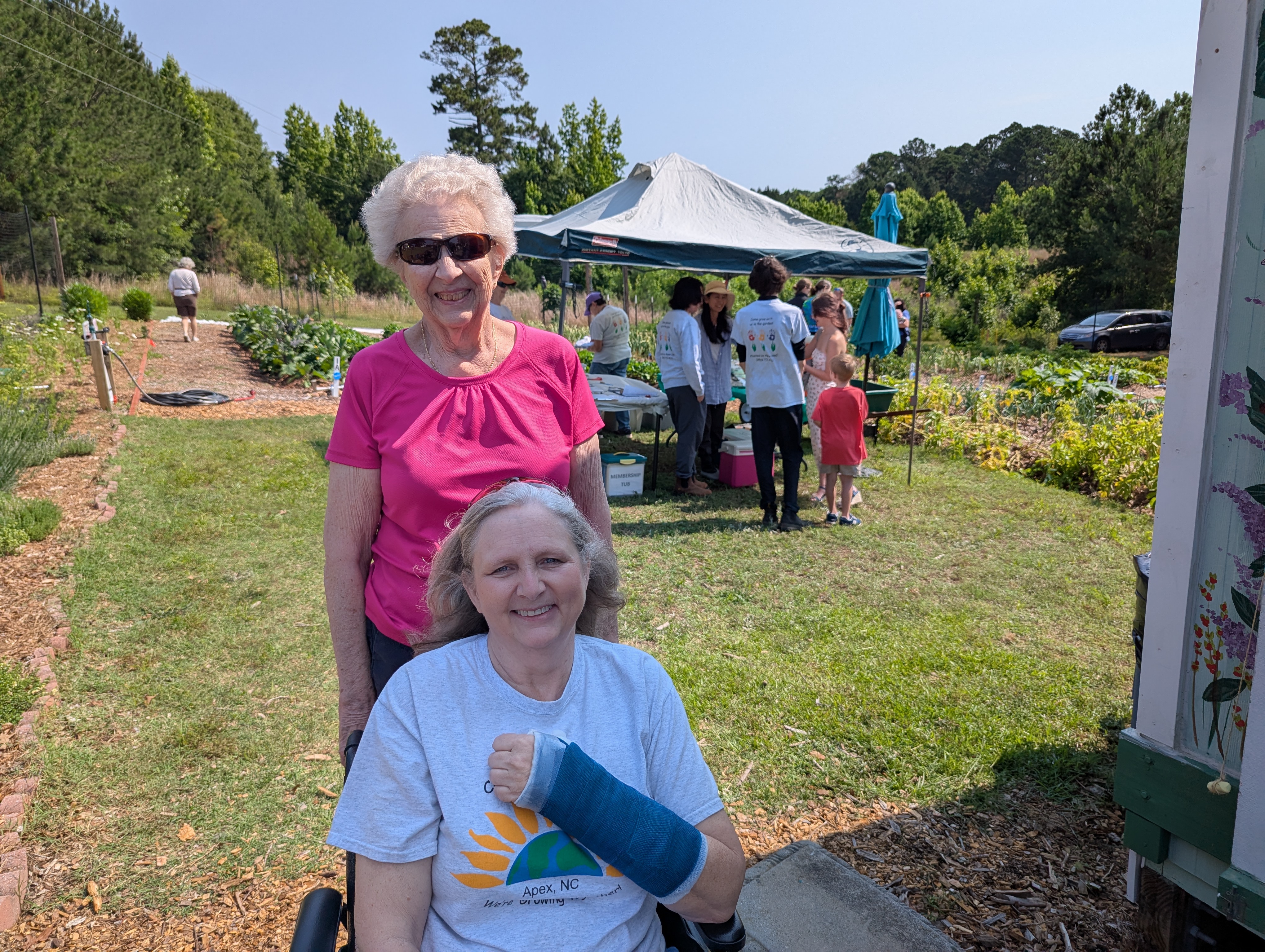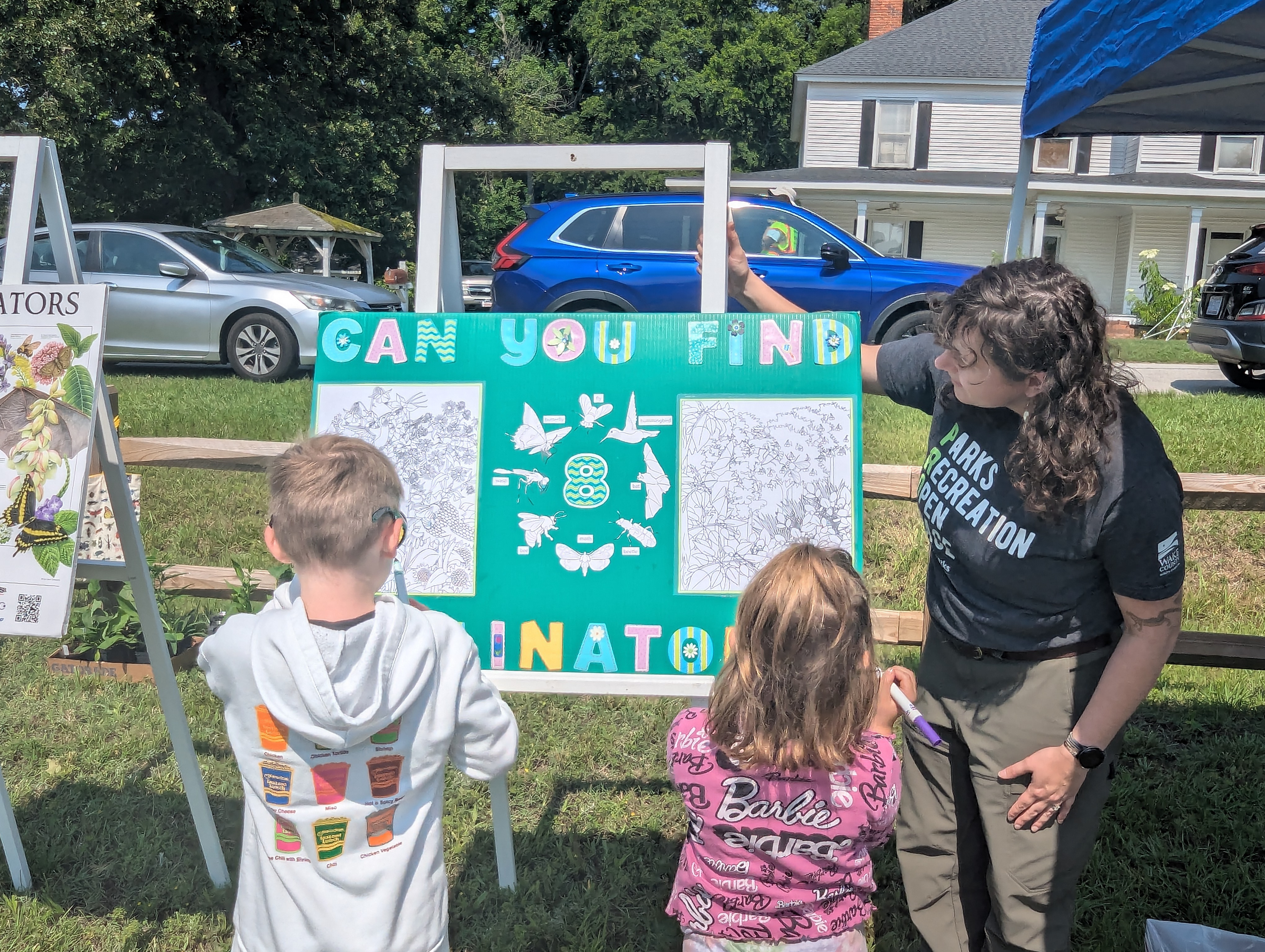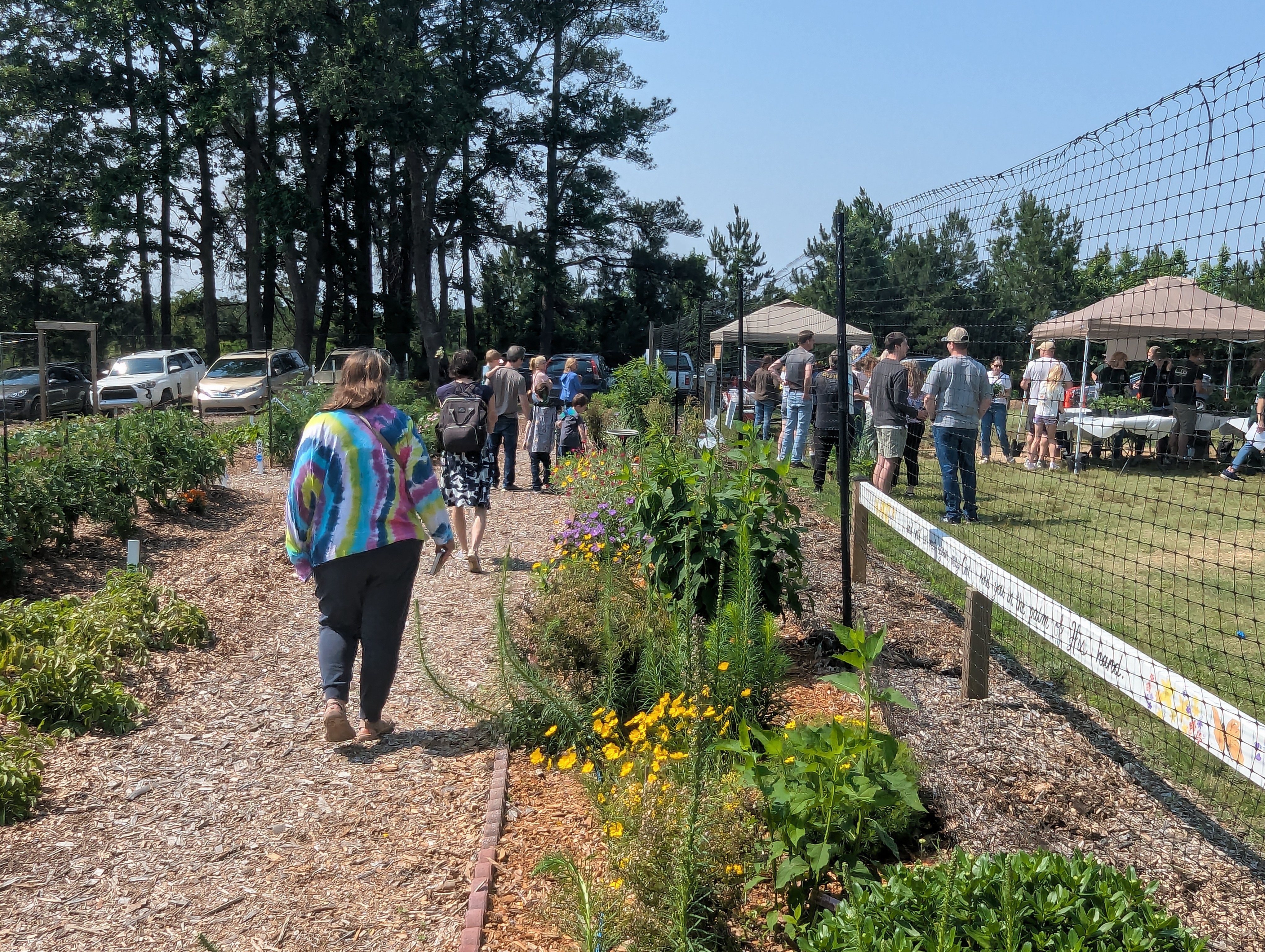 Simple Gifts Community Garden joined forces again with South Wake Conservationists to hold an Open House together with the the SWC Native Plant Sale at the garden Saturday morning. This was our first open house since the grand opening last year and something we hope will become an annual tradition. The community came out in force, with an estimated 150-200 people attending this joint event. Garden leaders took turns leading small groups on tours of the garden, ending at the refreshments and membership tables by the shed. The reaction of visitors to what they saw and learned at the garden was consistently enthusiastic. In just a couple of hours, we added eight new families to our membership rolls!