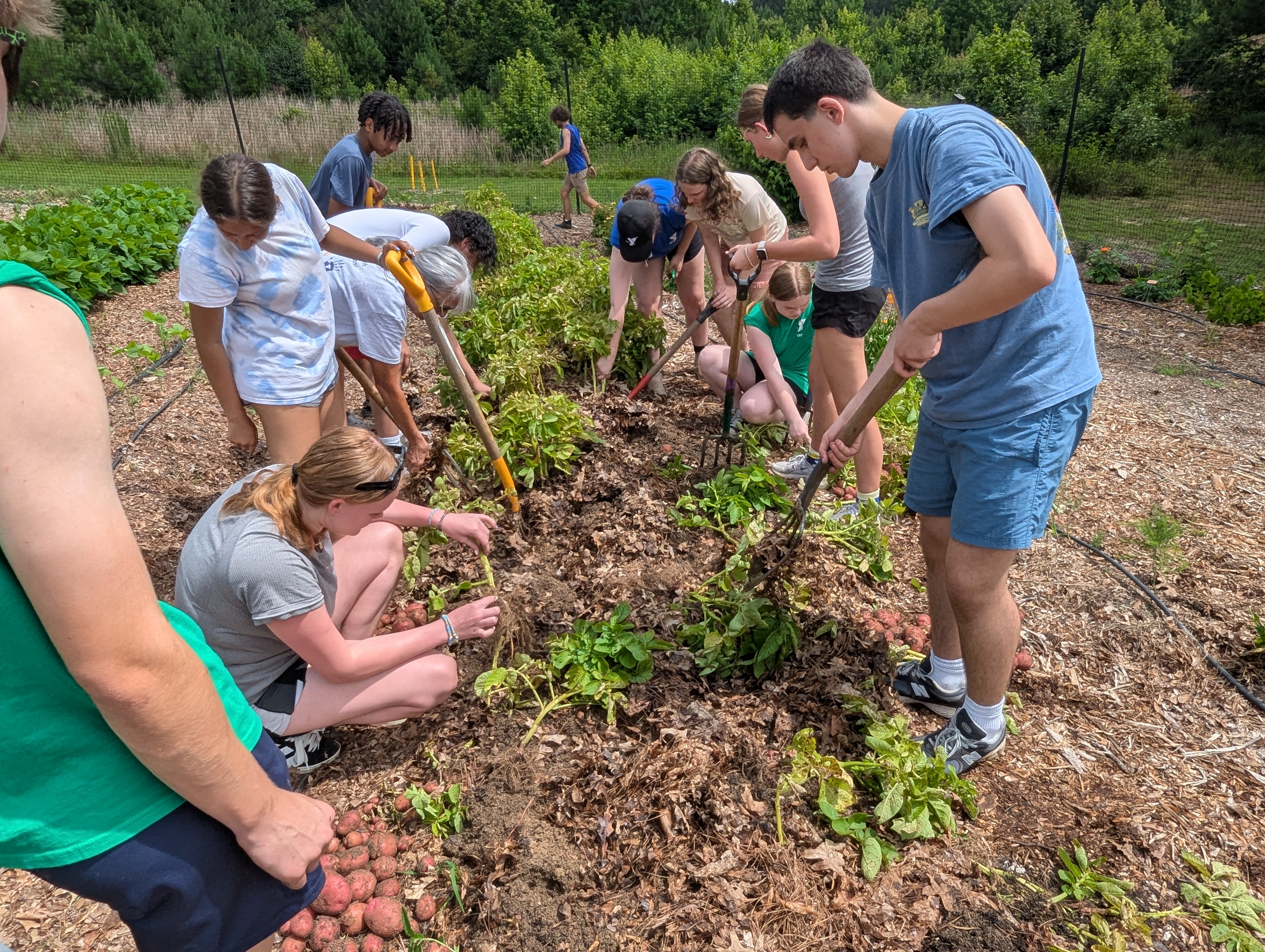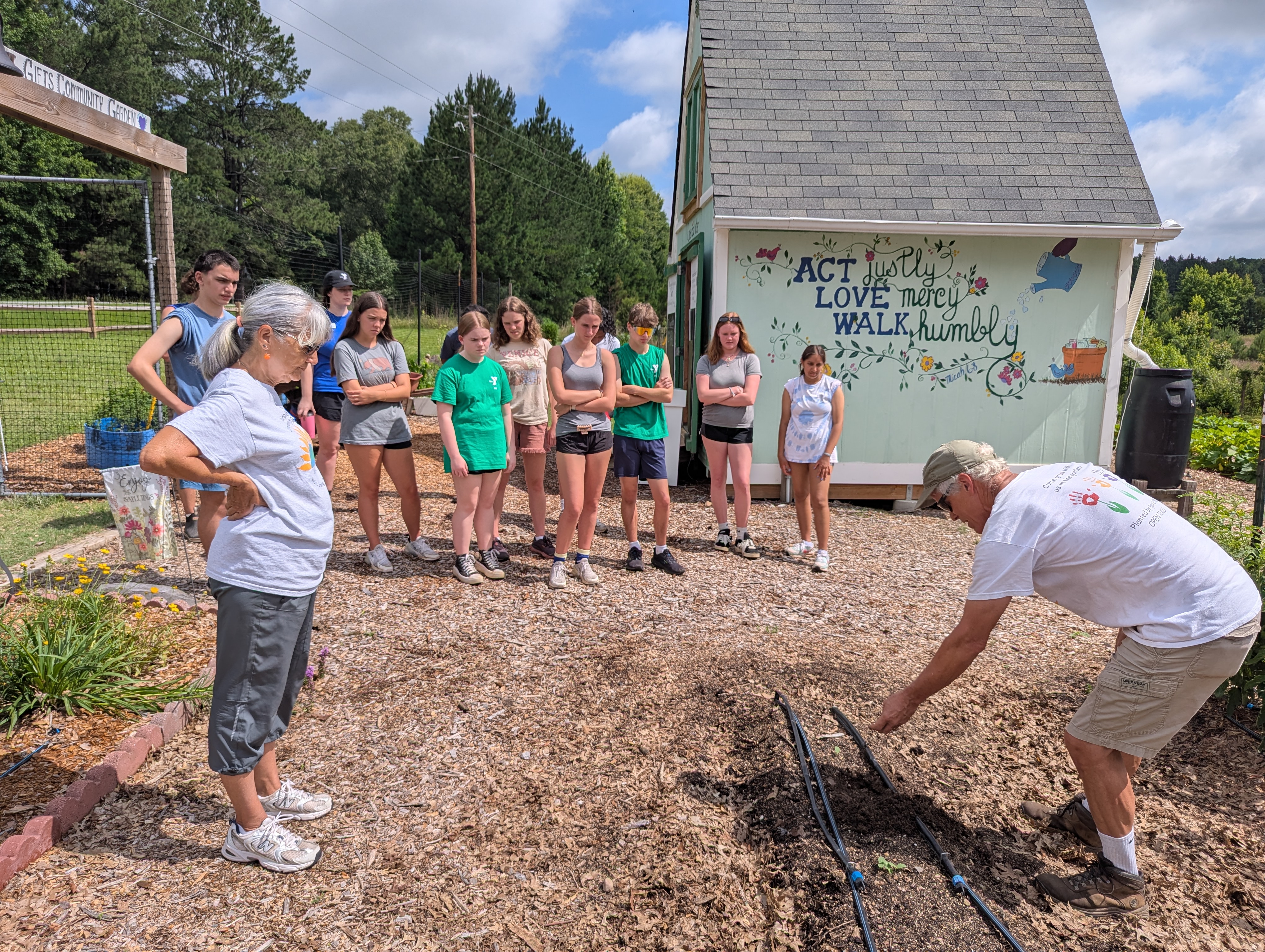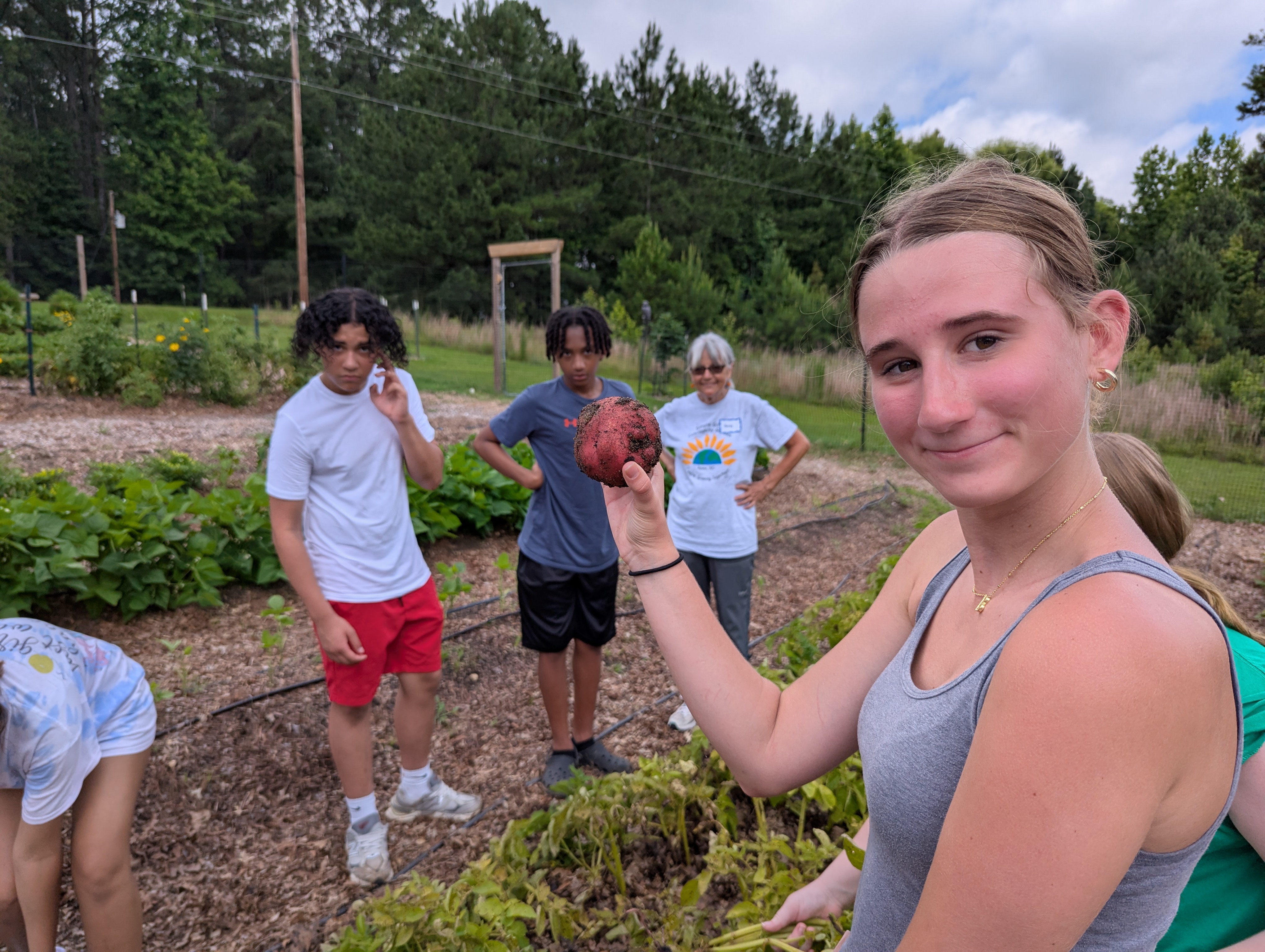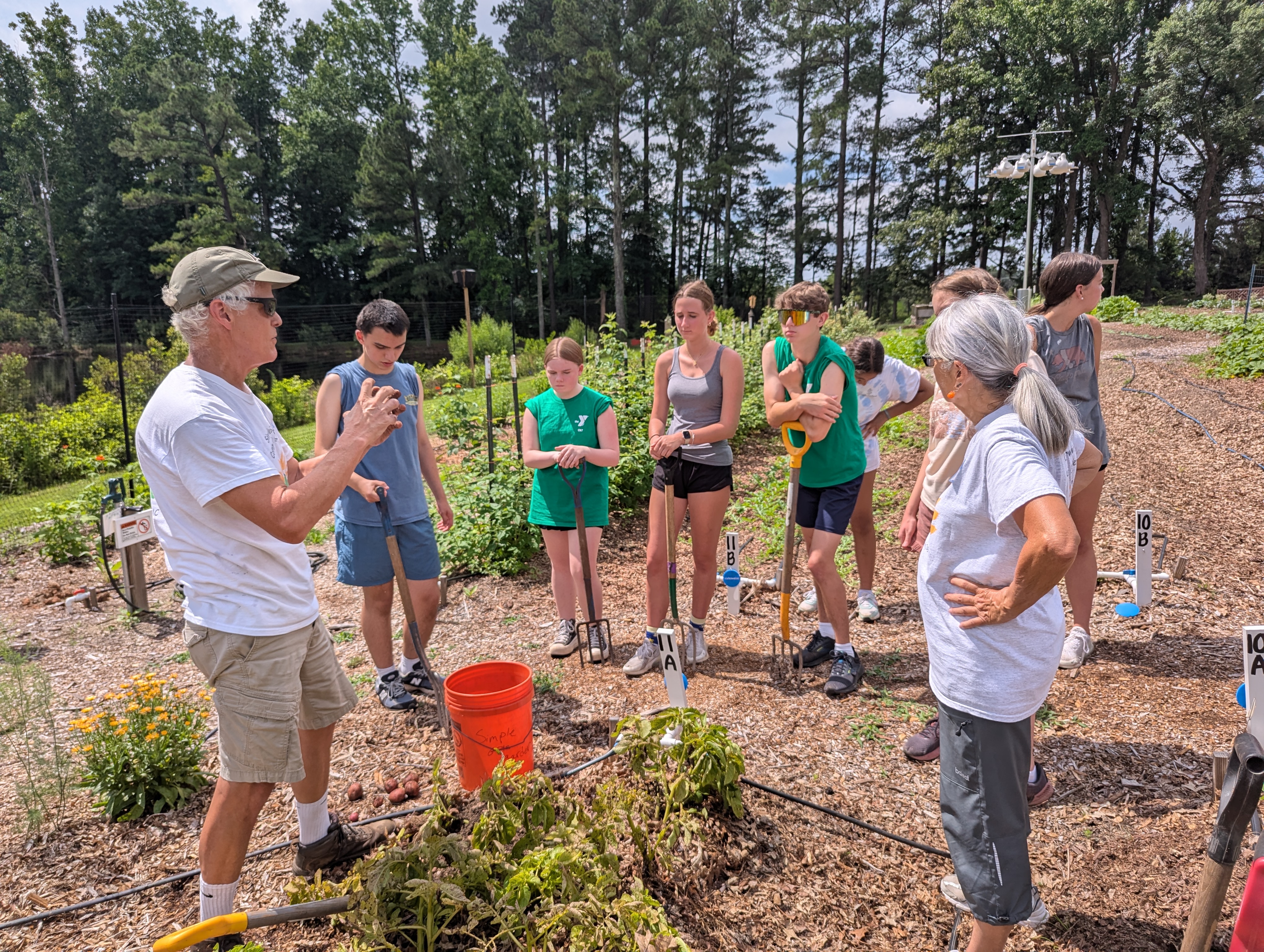 Today was the first of several YMCA of the Triangle Summer Camp visits to Simple Gifts Community Garden planned this year. Todays visiting camp was “CILT Camp” (Campers in Leadership Training), comprised of teens in rising 9th – 10th grade who are looking for opportunities to serve and lead. It’s located at the Kraft Family YMCA in Apex.