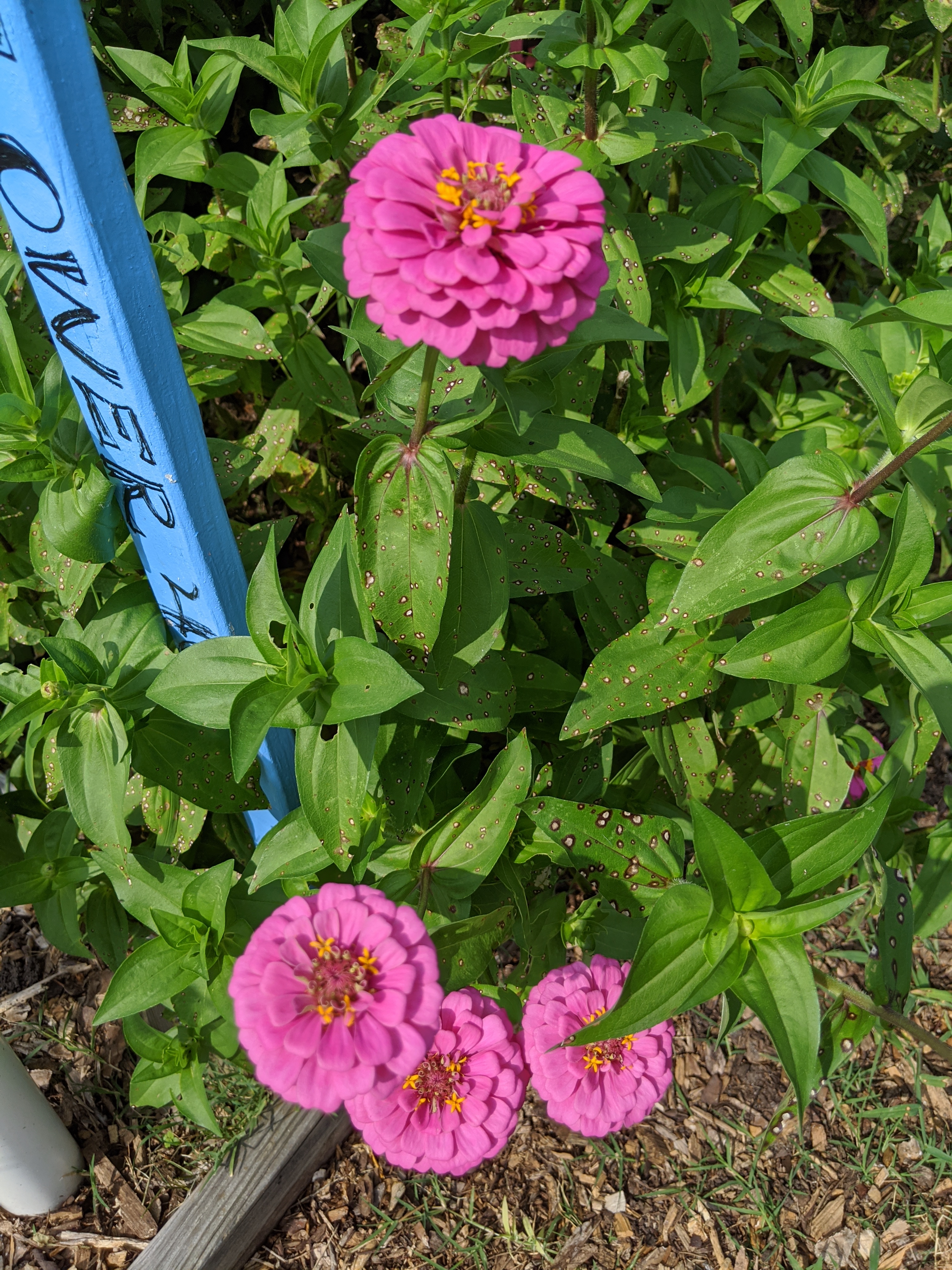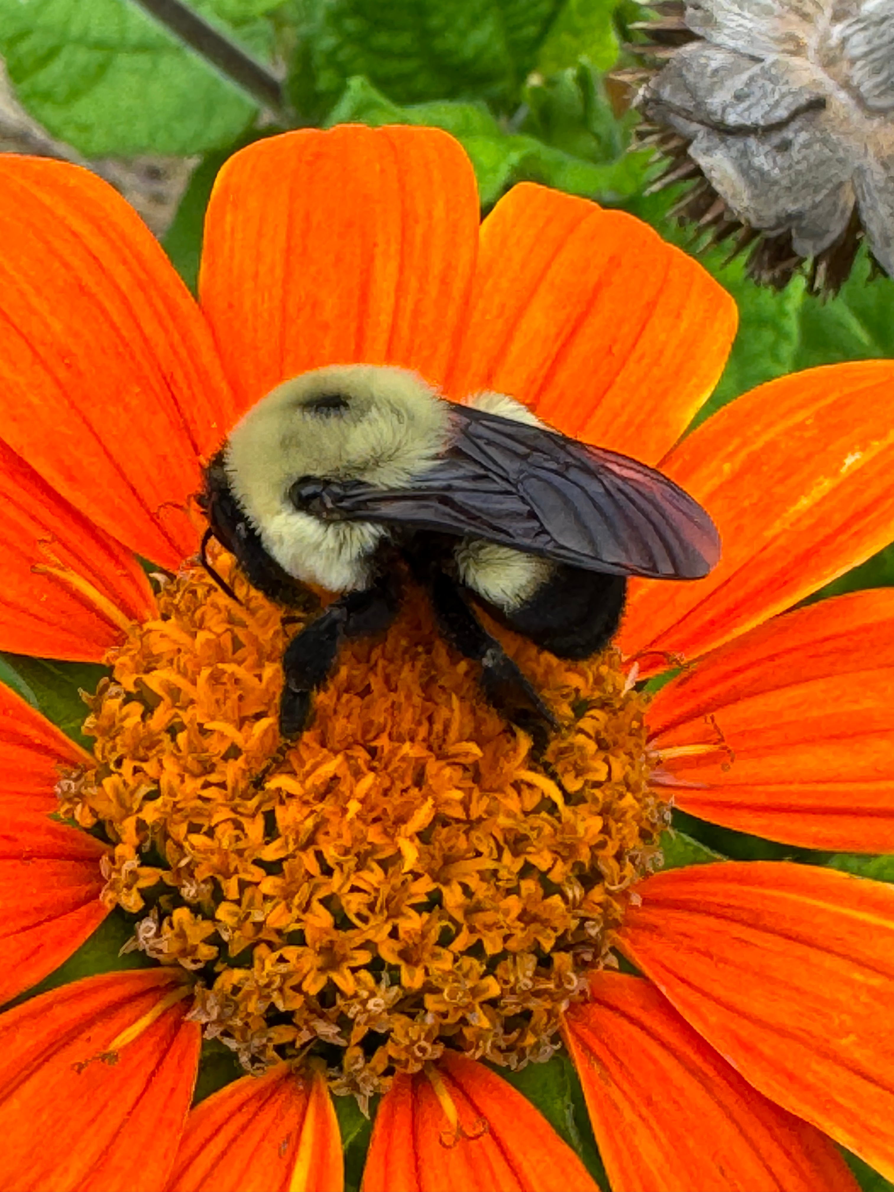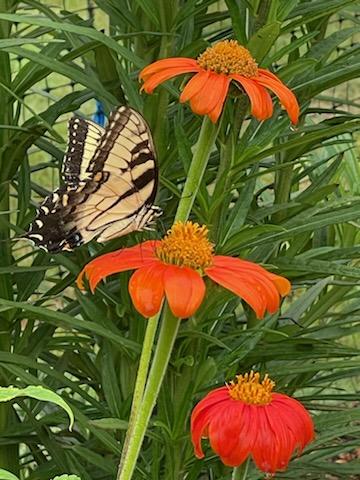 Each year, we also plant a lovely cutting garden with zinnias, cosmos, tithonia, and other annuals. Sharing this garden are the pollinators that visit the flowers for nectar and the gardeners who occasionally cut bouquets to take home or to bring cheer to folks at local nursing homes.