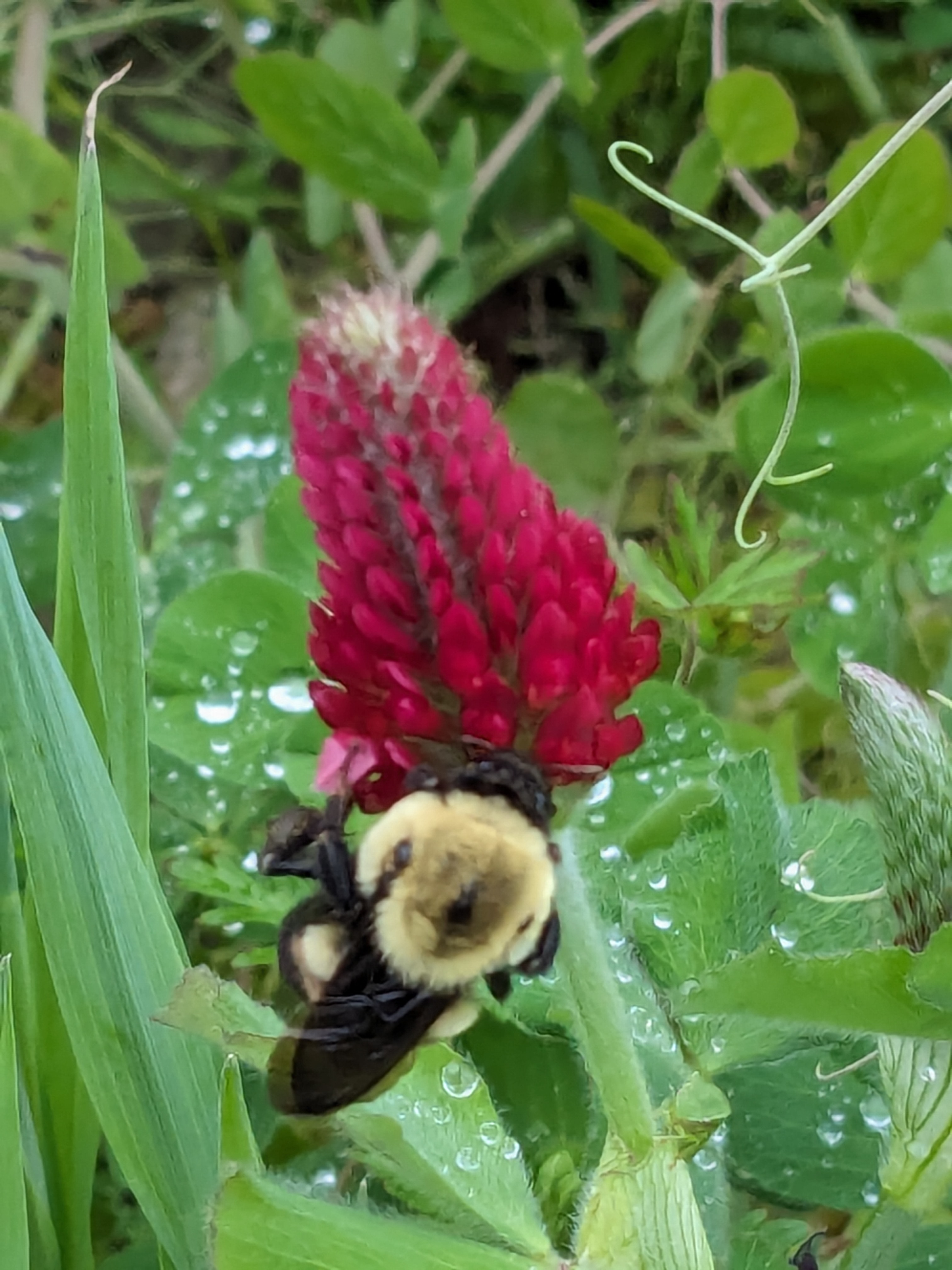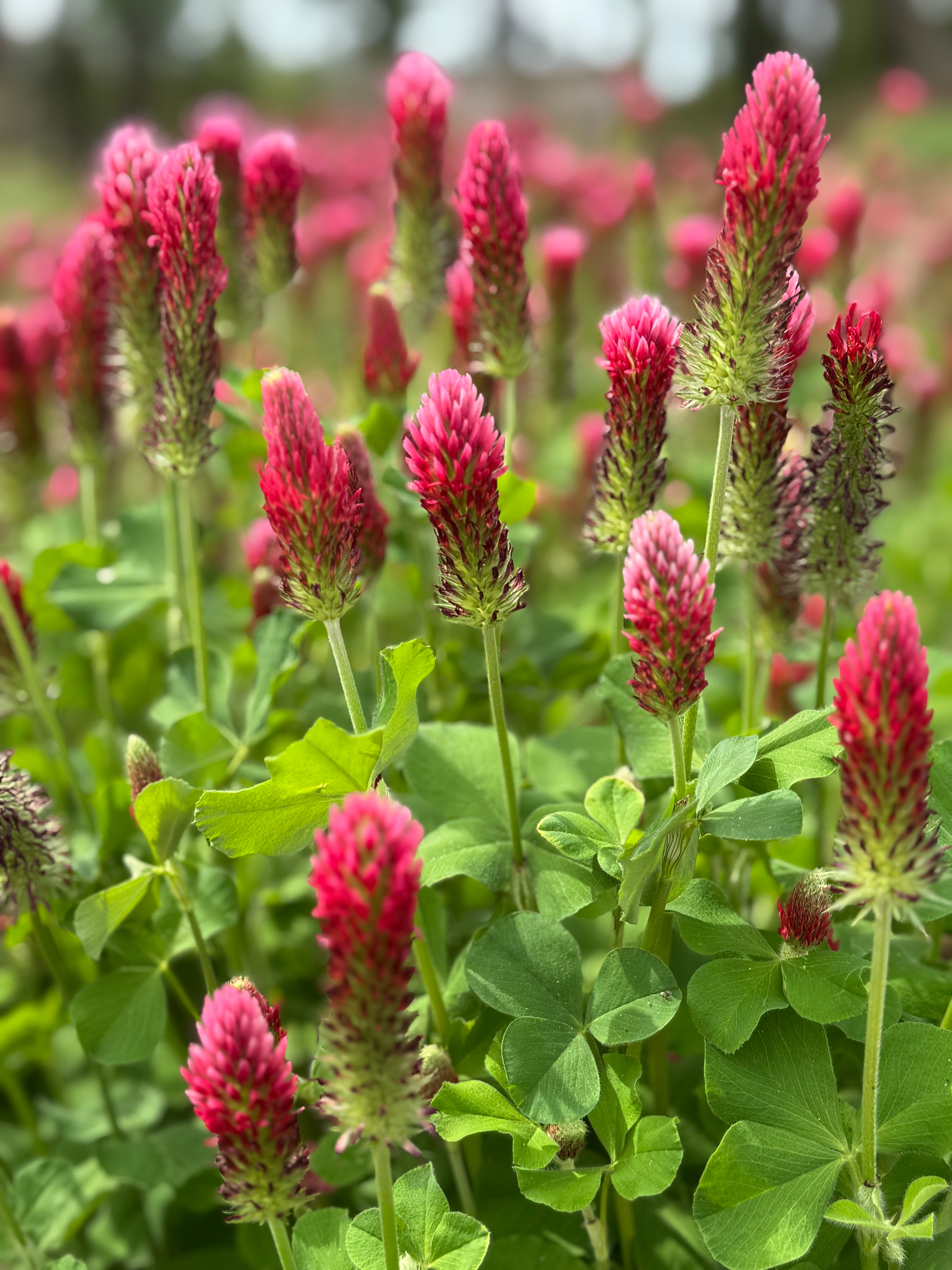 You may notice flowers growing among the vegetables in our rows, too. In addition to their beauty, these companion plants attract beneficial insects and repel pests. In the winter, we also plant rows of red clover and winter pea as cover crops that improve soil fertility and, when blooming, attract a multitude of pollinator insects.