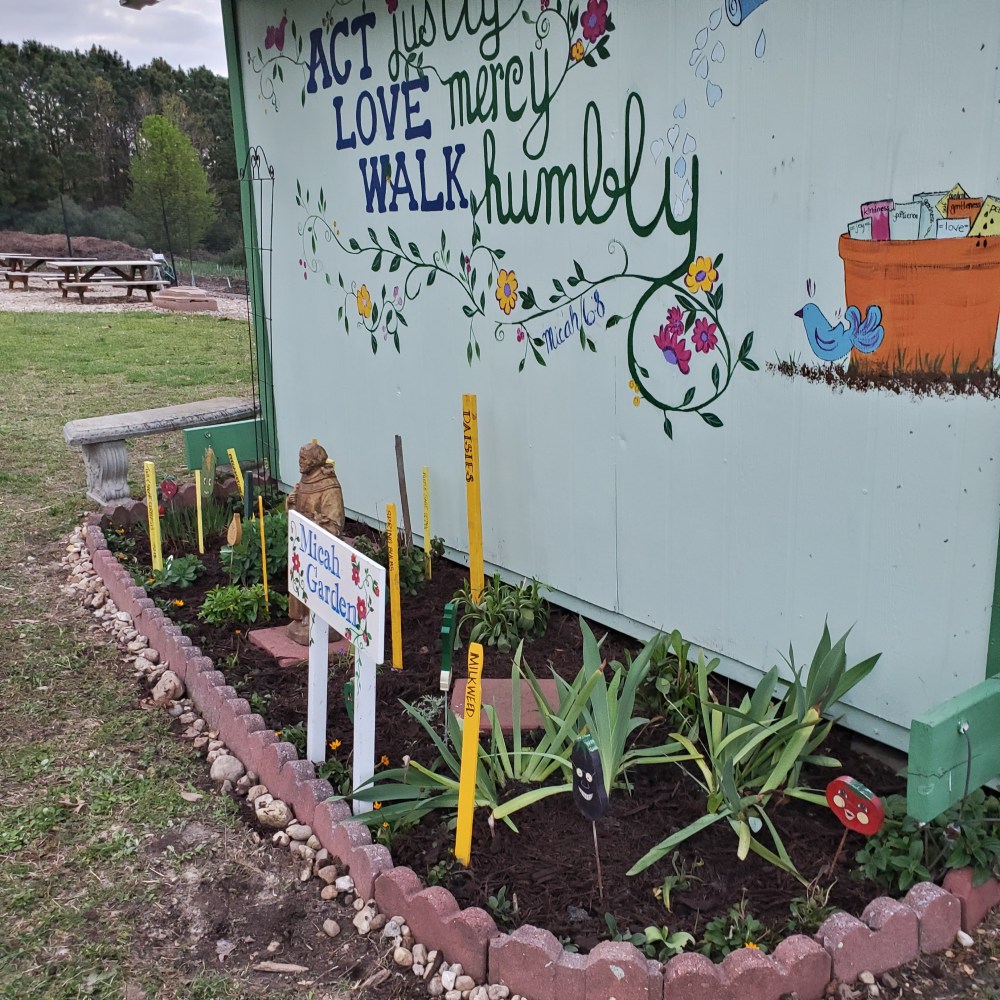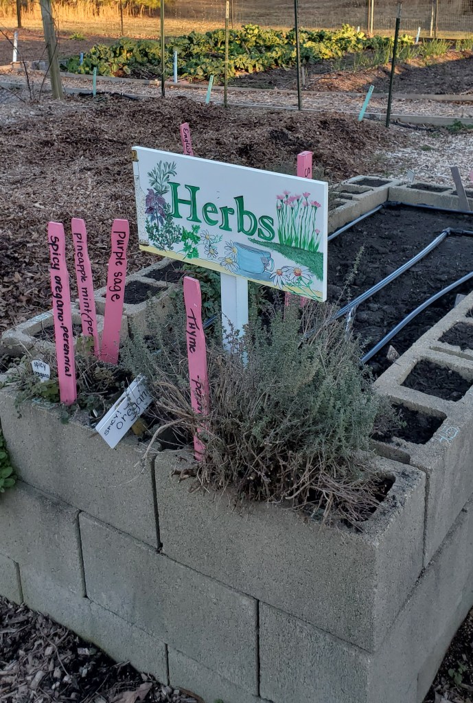 is a “U” shaped raised bed made of 3 layers of cinderblocks that features almost sixty 6×6″ spaces, as well as 3 larger, open areas. Specific plantings vary by year, but are influenced by our members and visitors. All herbs here are for open sharing at any time, so a gardener can pop over to pick herbs for tonight’s dinner or harvest some to freeze or infuse in oil, vinegar, or tea. From the familiar fragrances of thyme, sage, and basil, to newer discoveries like shiso, over 50 varieties of herbs and edible flowers are found in the herb area.