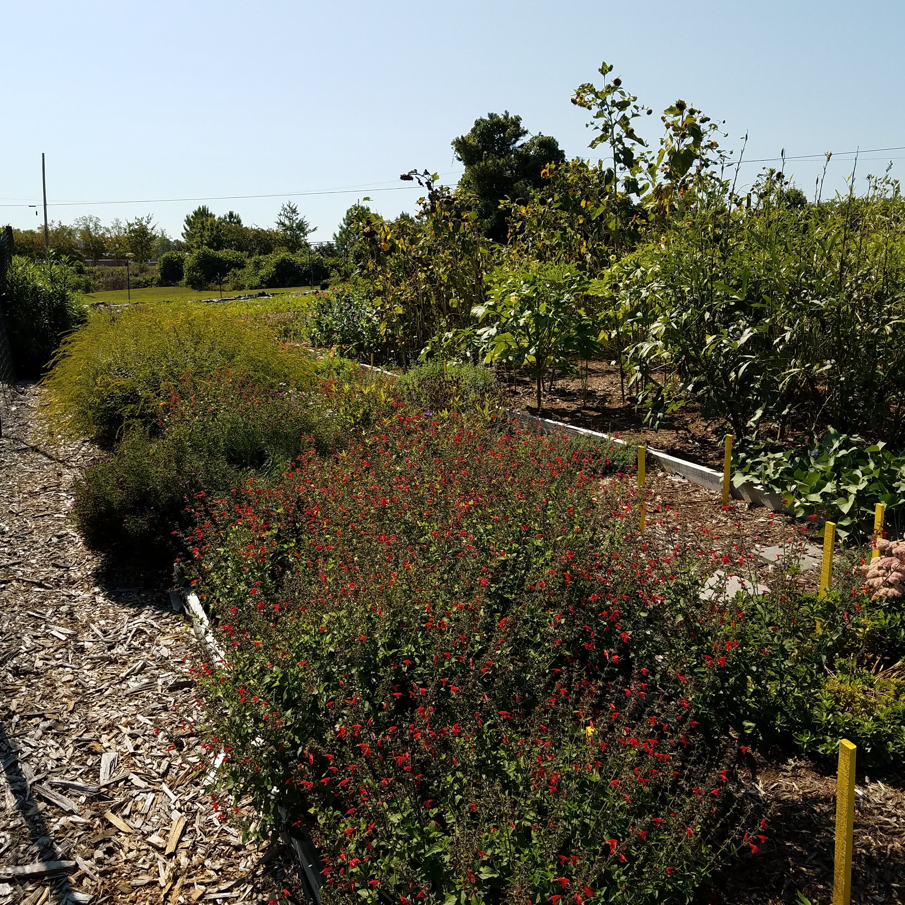 Designed to demonstrate how 20 plants in 50 square feet of space can yield 3 seasons of blooming, native pollinators.