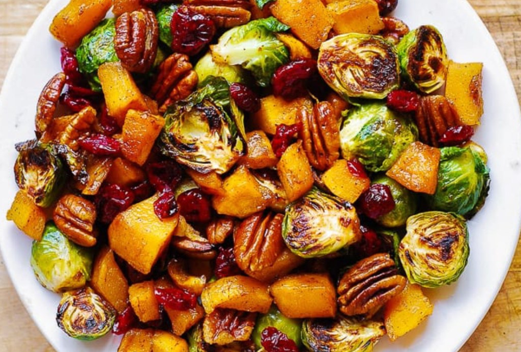 Brussel Sprouts and Cinnamon Butternut Squash with Pecans and Cranberries